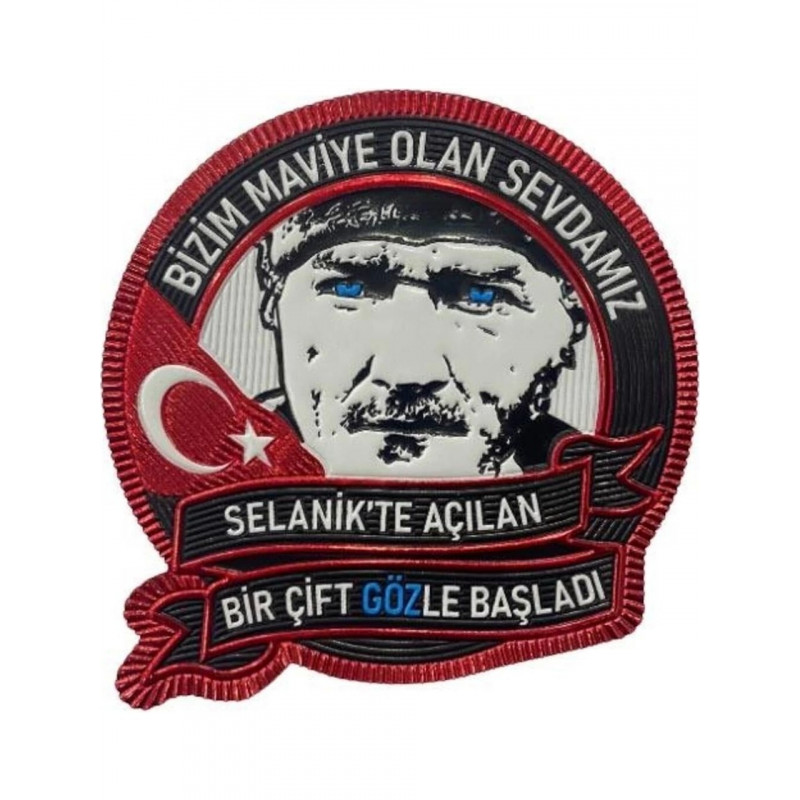 ''bizim Maviye Olan Sevdamız" Yazılı Atatürk Patch 7 cm 3D Plastik, 2025 Yeni Tip,